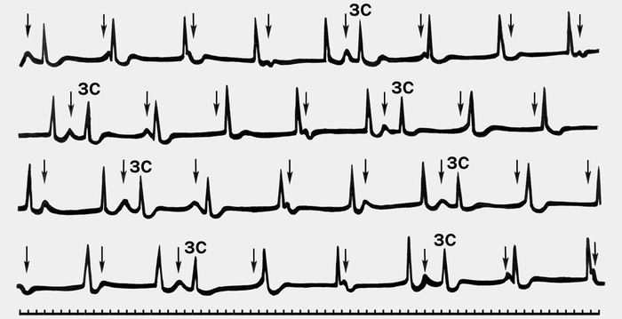 ***Neatkarīgs ritms priekškambaros un kambaros, kur neregulāri vadīti sitieni "traucē".