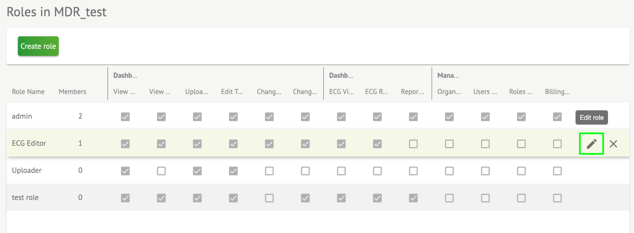 Cardio.AI creates a predefined set of roles while creating the organization. The default created roles are: Admin, ECG Editor and Uploader.