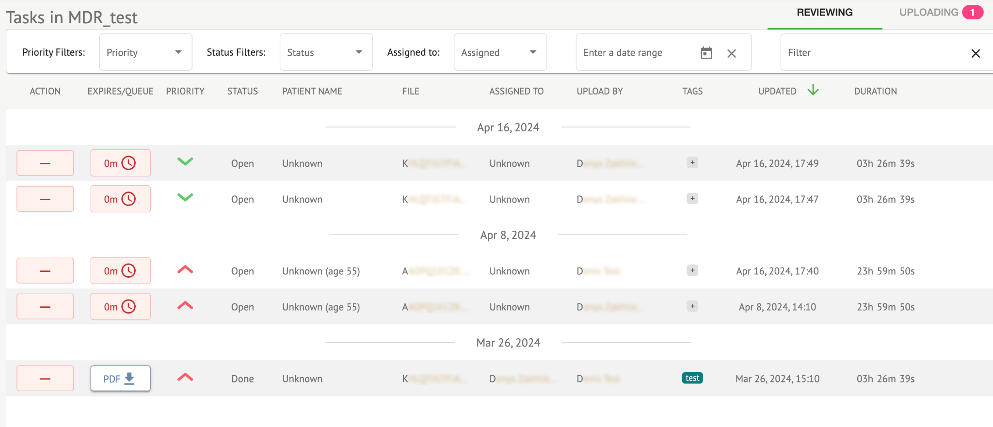Edit Tasks List Enables a user to Edit personal data of the patient, Reclassify and Reupload the task data.