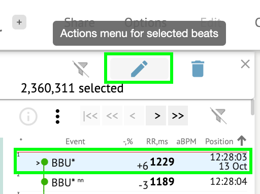 Виберіть запис: виберіть запис ЕКГ, який ви хочете редагувати.