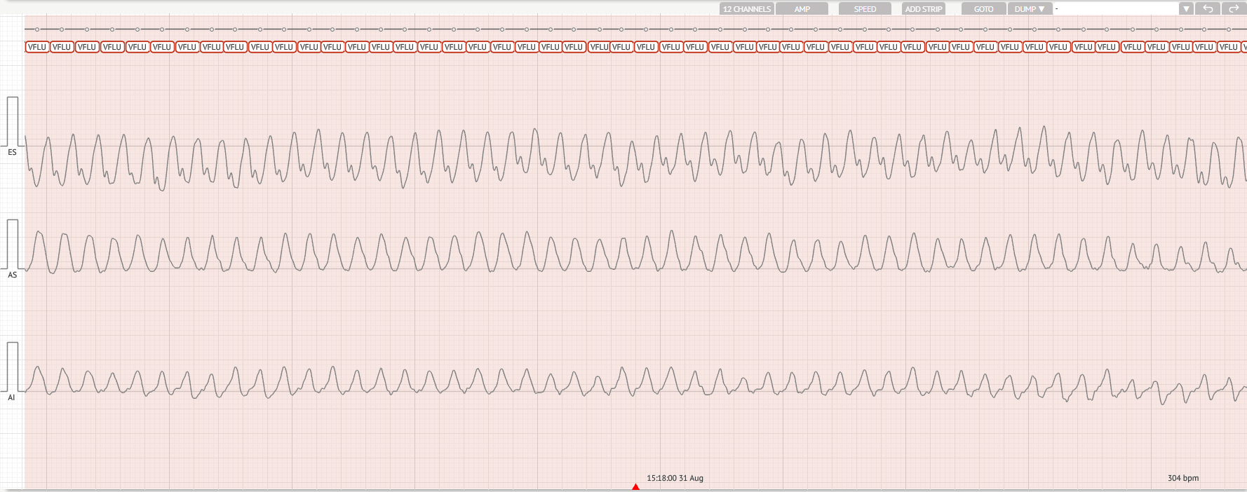 Інтервал R-R виглядає регулярним (хоча й надзвичайно швидким).