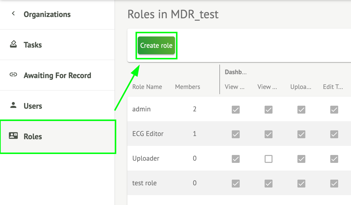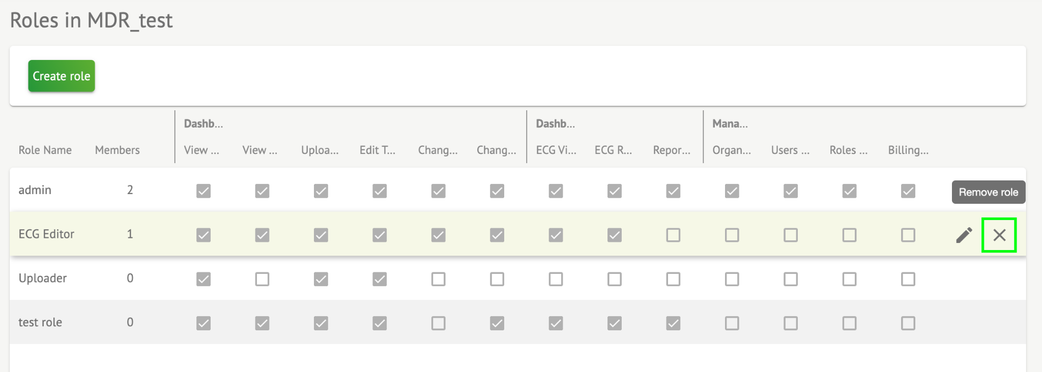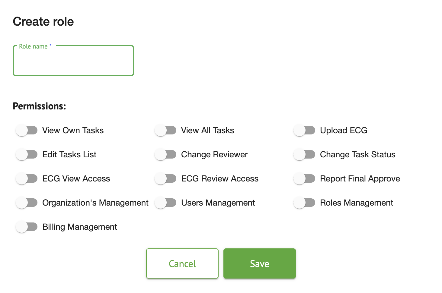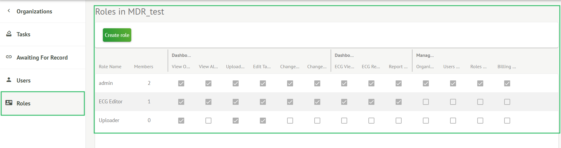 Cardio.AI створює заздалегідь визначений набір ролей під час створення організації. За замовчуванням створюються такі ролі: Адміністратор, Редактор ЕКГ та Завантажувач.