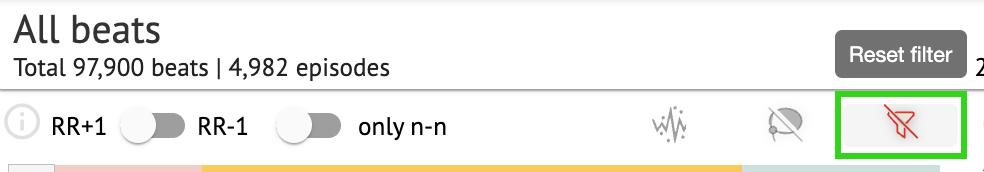 Опція фільтрування ударів на графіку Пуанкаре доступна, якщо натиснути на такі елементи фільтра: