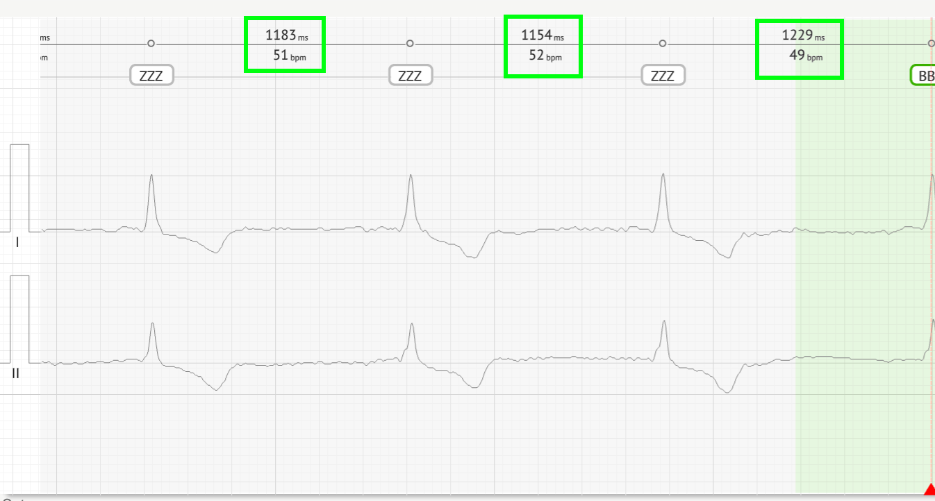 Вибрані інтервали відображаються в основному переглядачі ЕКГ.