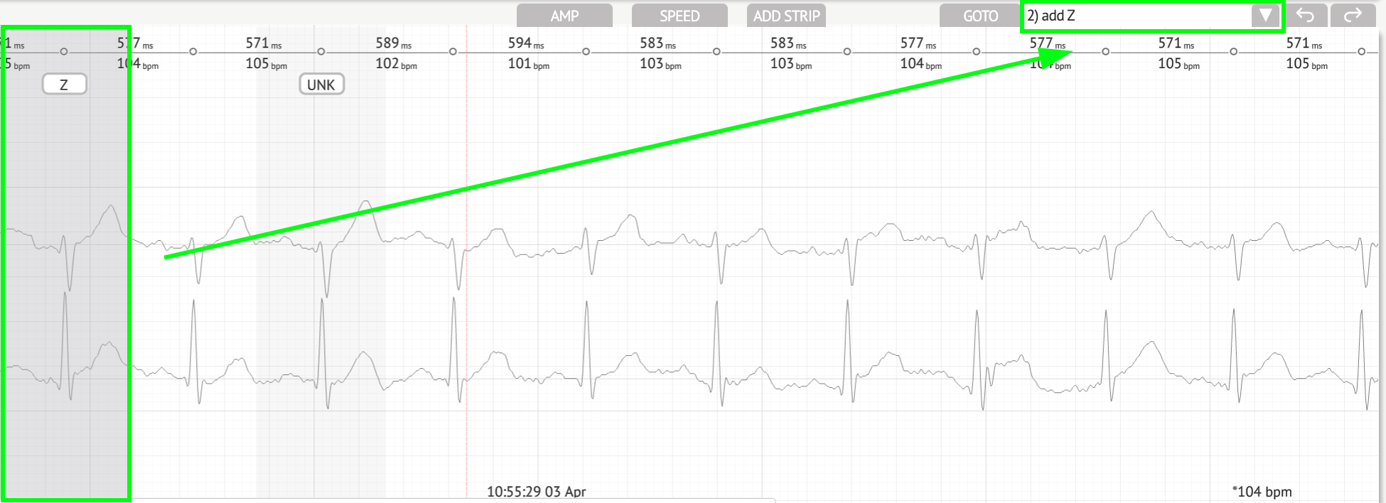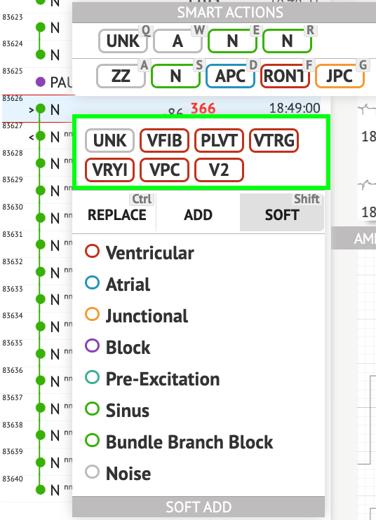 Розумні дії - меню редагування, що дозволяє користувачеві керувати ударами в розділах «Переглядач» і «Візуалізатор» завдання ЕКГ.