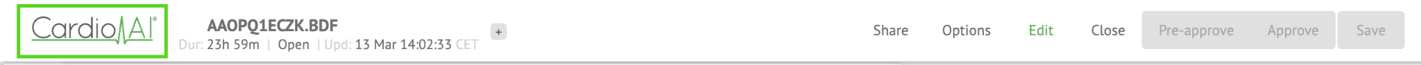 Розділ заголовка — дозволяє користувачеві керувати параметрами перегляду ЕКГ, зберігати та затверджувати ЕКГ.