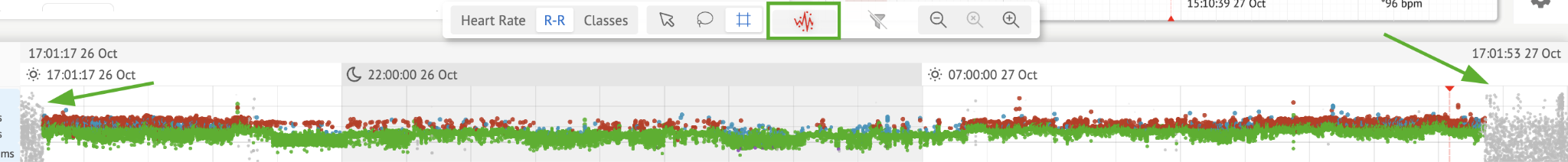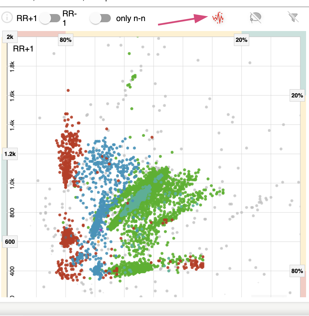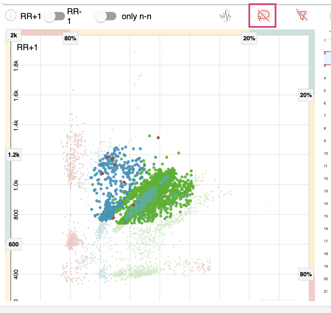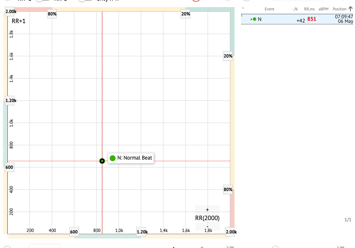 За замовчуванням діаграма Пуанкаре відображається в режимі RR +1. Опція переходу в режим RR-1 доступна під відповідним перемикачем: